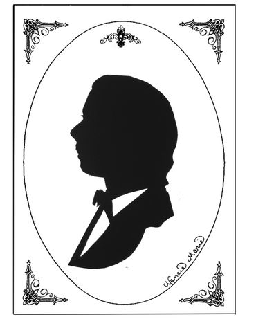 These memorable paper portraits are hand cut, the classical way, with small, sharp scissors and special black paper. I do these purely by looking at the sitter's profile (side view), and within a a couple of minutes, his/her image has been turned into an endearing keepsake.